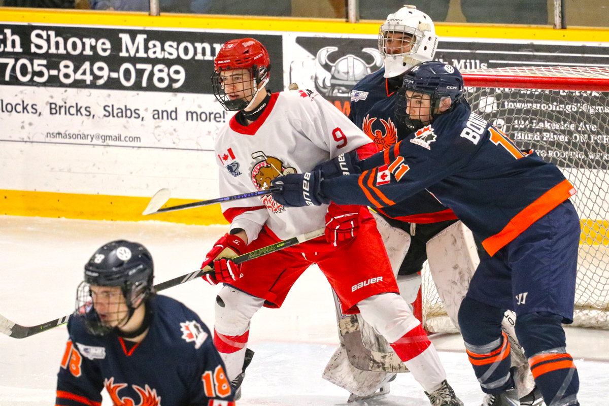 Breaking the deadlock on an early power play in the second stanza, Blind River’s Ryder Hill fired an attempt along the ice to the front of the net that clipped off the skate of a Sault Ste. Marie defender and trickled through Maguire to give him nine tallies in his past nine outings.