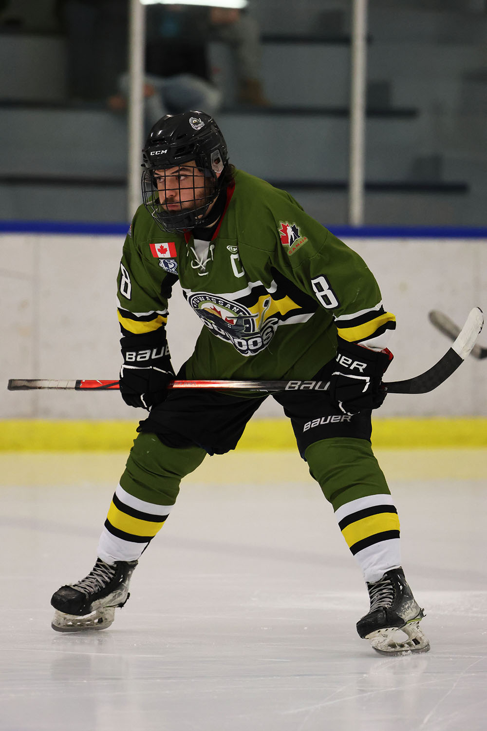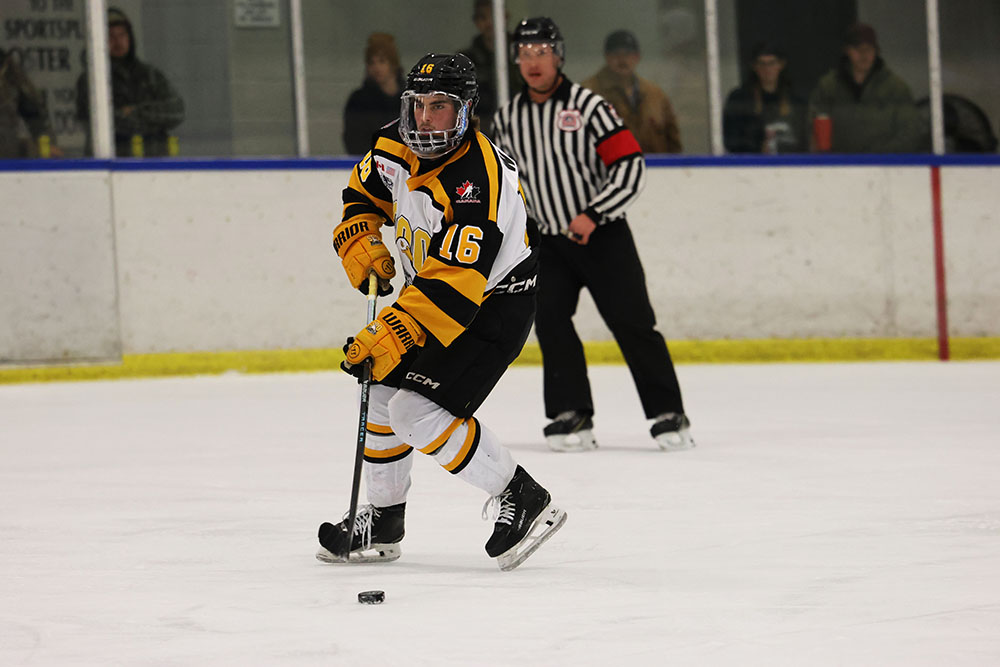 Pulling even a few minutes later, Sault Ste. Marie’s Logan Stawizynski roofed a wrister high over the shoulder of Powassan’s Derrick Champagne.