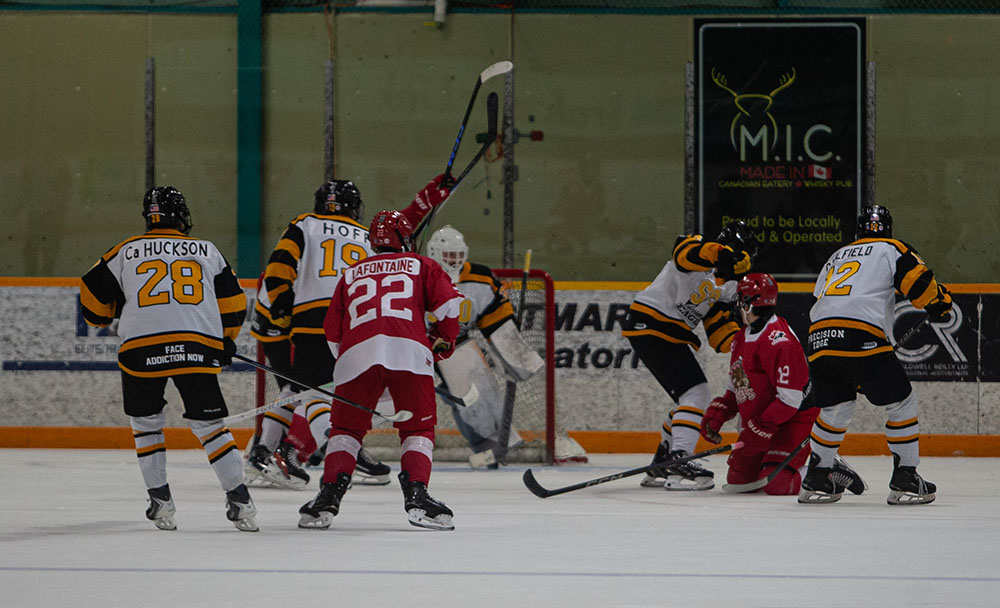 Notching another six minutes later, Sault Ste. Marie made it 2-0 when Lucas Caulfield sent a pass into the slot that Carter Huckson skated into and buried for his first NOJHL goal.