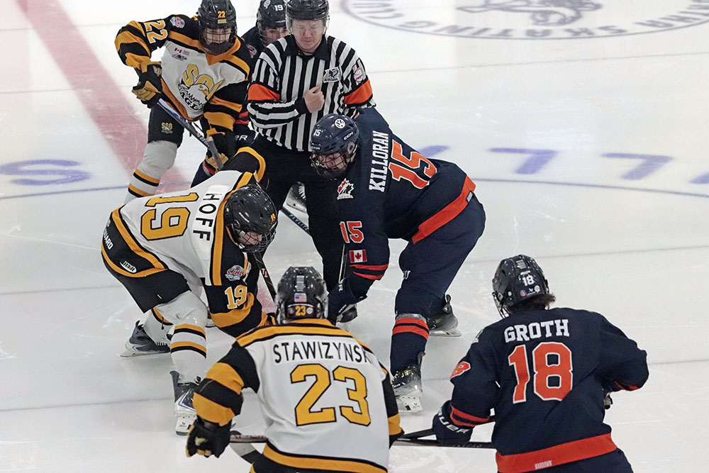 Jacob Petterson potted the third for his club at 8:47 as he took a pass from Lucas Caulfield and whipped it in from the right side before Stawizynski found the range as he outraced a defender to the puck on a dump in and lifted it in.