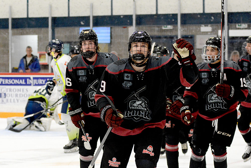 It was the Paper Kings who scored first in the match-up when Callum Millar snagged a turnover in the Rock zone then quickly fired a feed to the net that was steered in by Owen Smith on Timmins’ Frédéric Cousineau 7:51 in.
