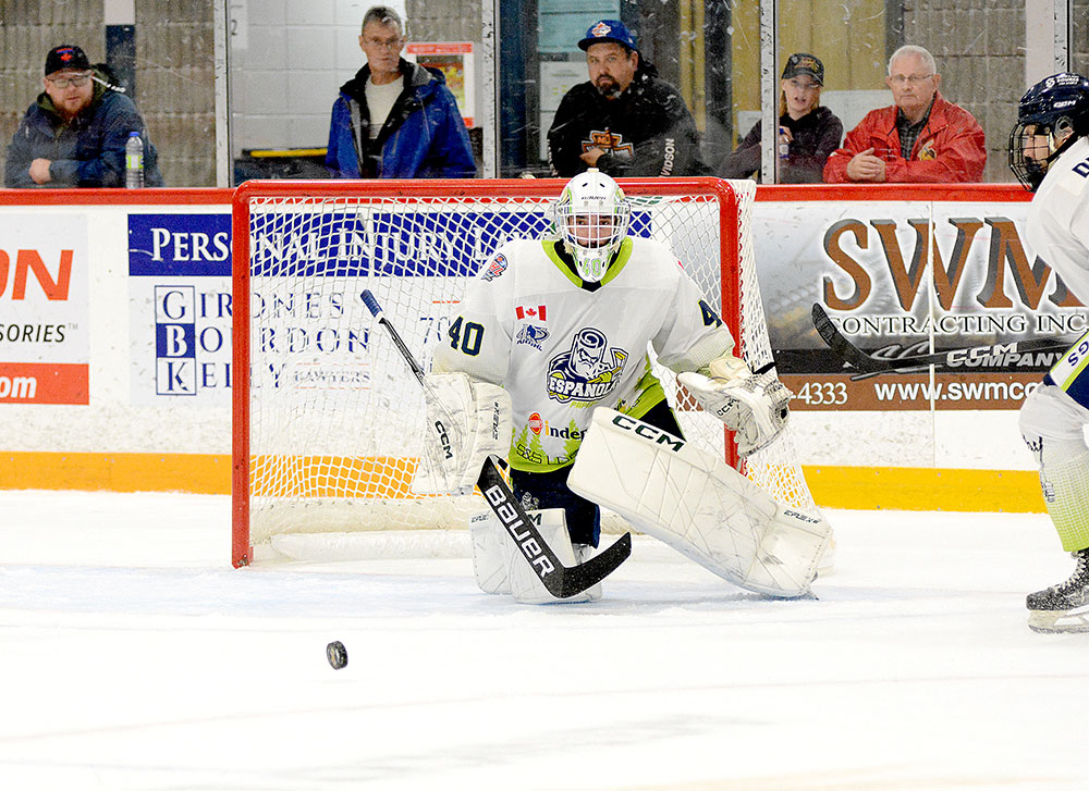 Pulling to within one moments into a power play with just over three minutes left and Cousineau out for an additional skater, Brant Romaniuk slid a pass over to Diego Da Silva who got just enough of an attempt to lift it over Espanola netminder Logan Vale.
