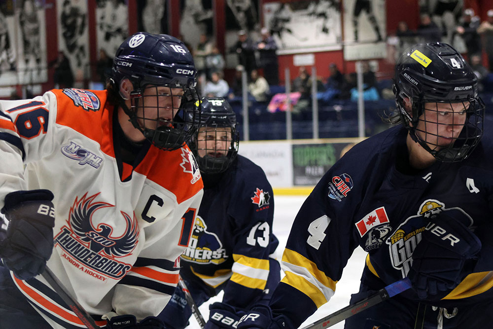 KIRKLAND LAKE, Ont. – An Ethan Alexander goal 13:19 into the second period held up to be the game-winner as the Kirkland Lake Gold Miners skated to a narrow 2-1 victory over the Soo Thunderbirds Sunday in a Northern Ontario Junior Hockey League matinee at Joe Mavrinac Community Complex.