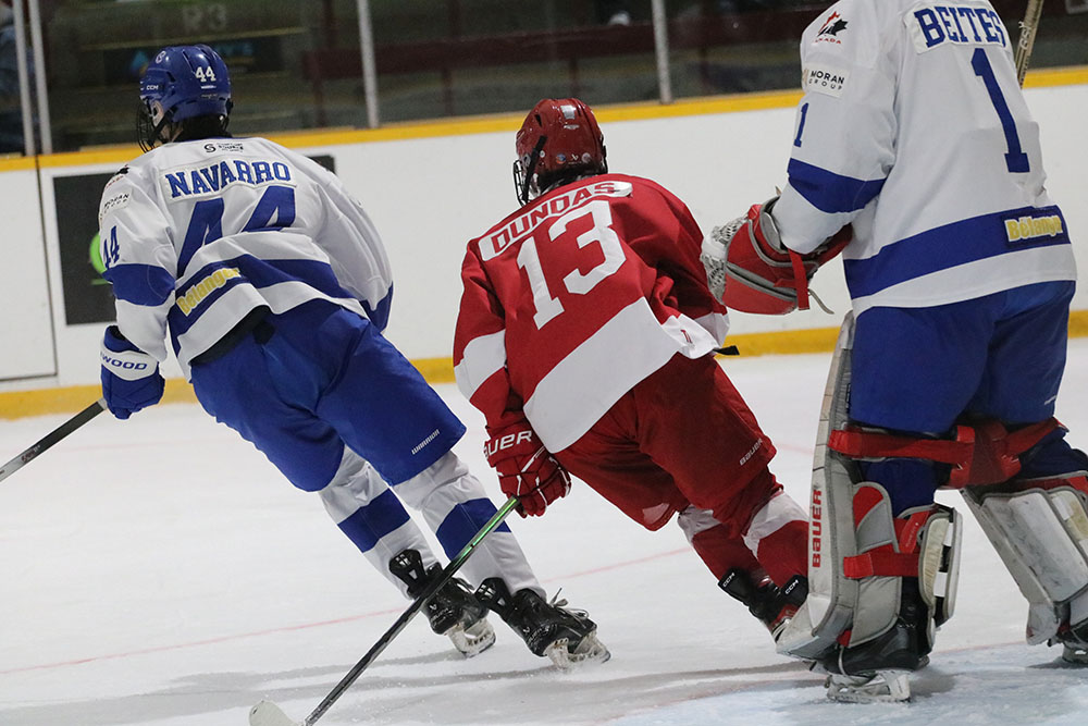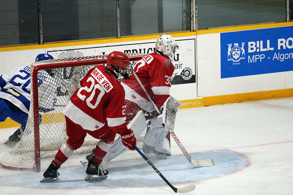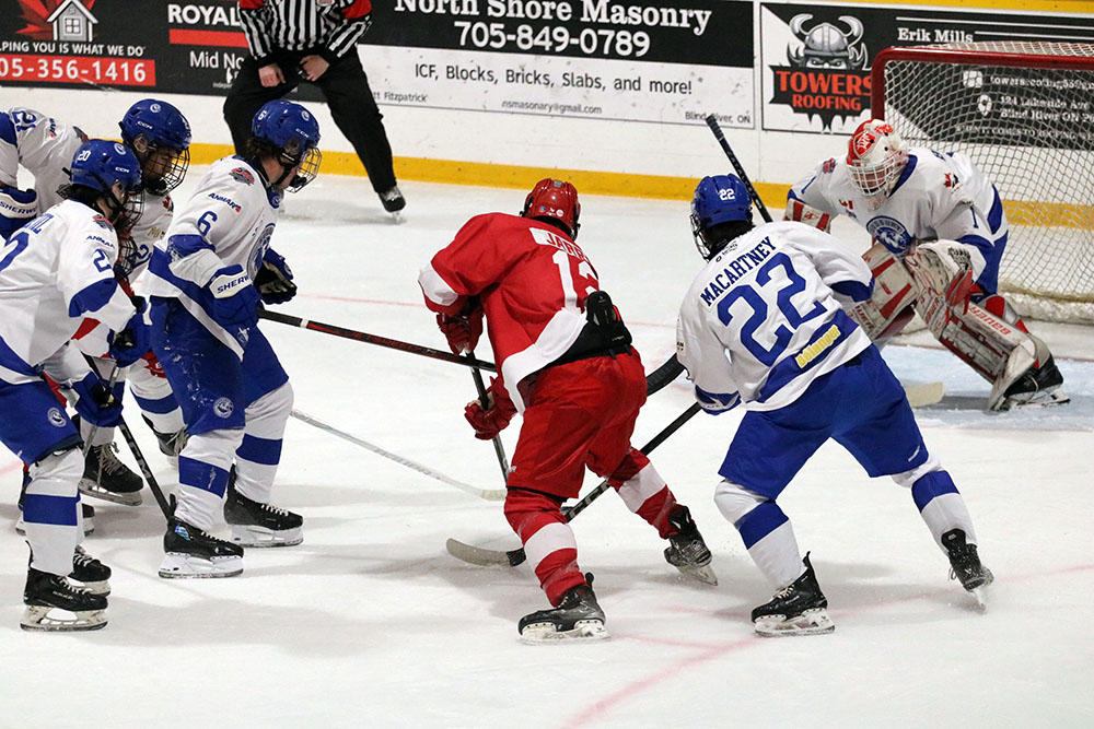 Action in a chippy second stanza saw the home side retake the lead at 16:33 thanks to McGahey’s first NOJHL marker as he redirected in a left point blast from defenceman Leighton Hurst.