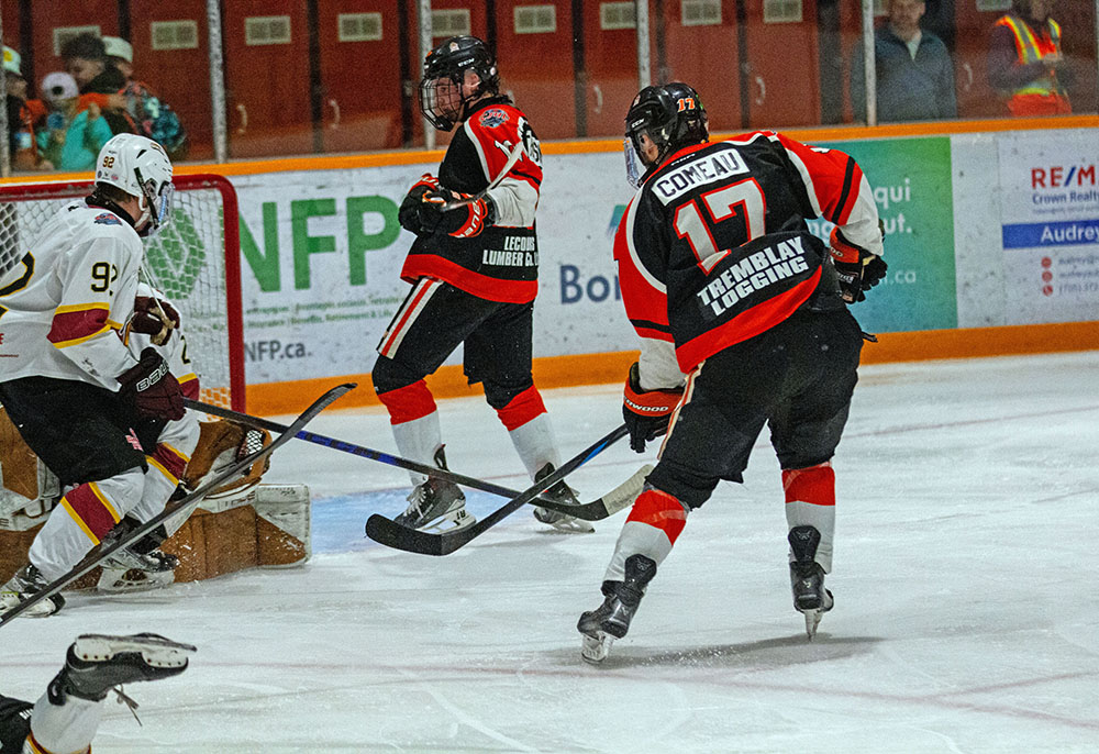 Converting on the night’s first power play, Ouellet gave Hearst the lead nearly three minutes into the matchup as he took a sharp feed from Comeau and cranked a one-timer from the right circle that flew by Timmins’ netminder Frédéric Cousineau.