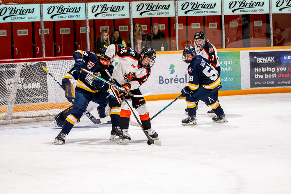 Continuing to battle, Kirkland Lake got to within one with 2:46 left in regulation on a hat trick tally off the stick of Harper as he chipped in a chance at the top of the crease.