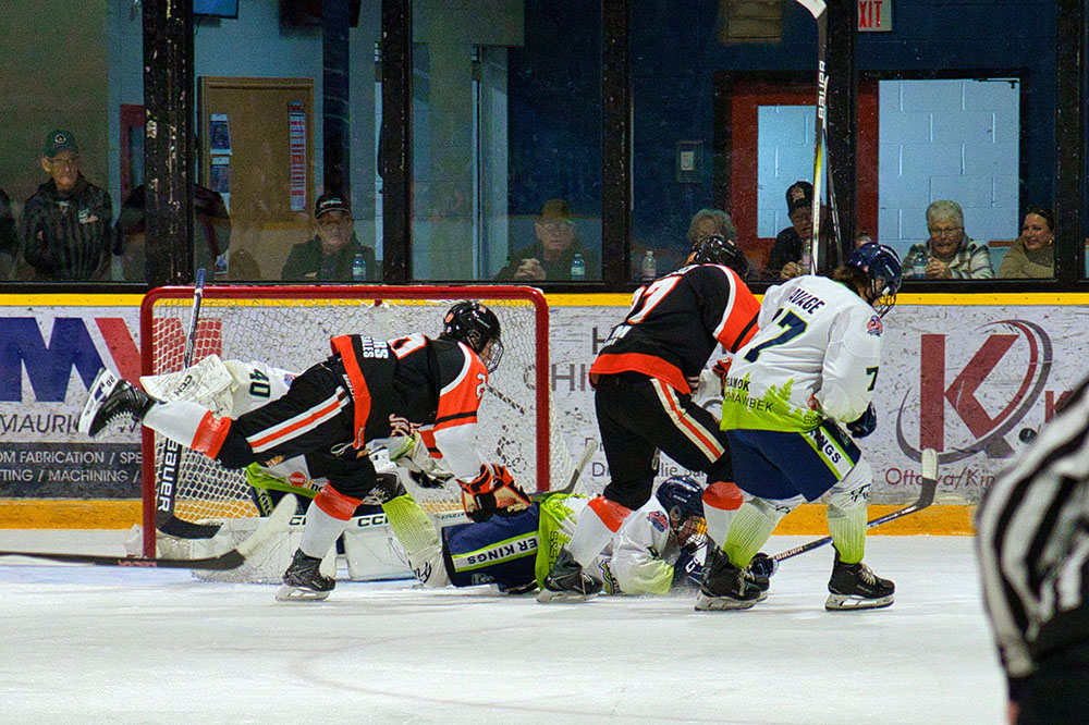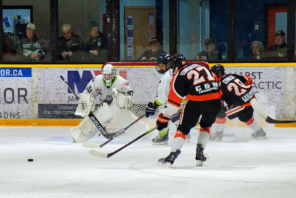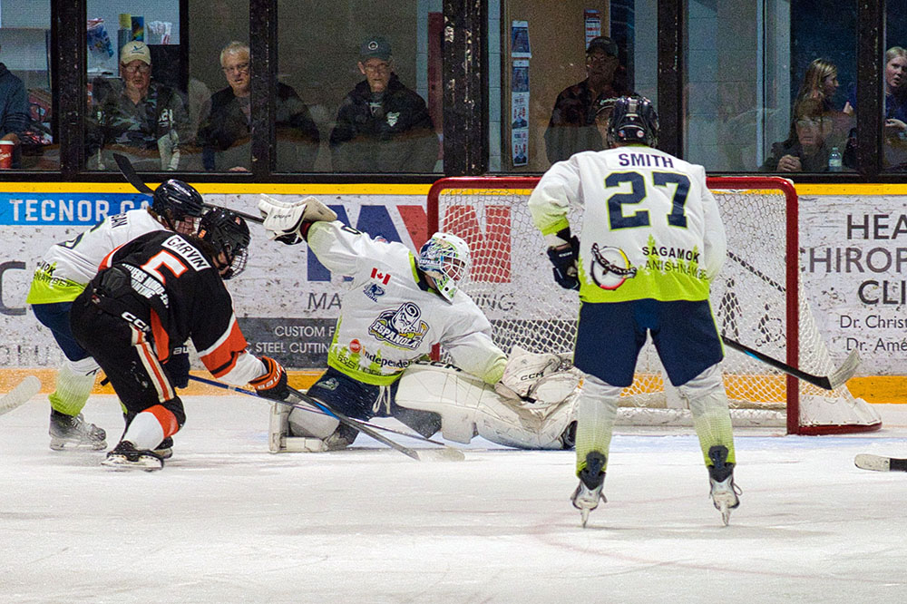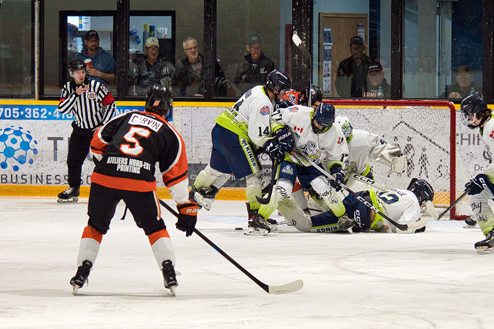 In the second stanza, the Espanola power play got them closer once more at 7:21 as Carter Drigo got the last touch on a bouncing puck off a drive from teammate Luc Warner.