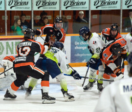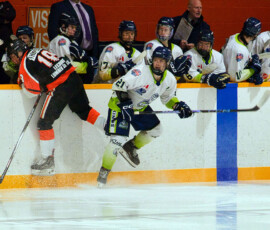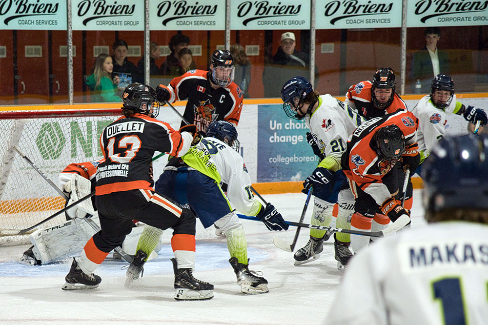 Countering rapidly, Mathieu Comeau put Hearst back on top just 27 seconds later as he accepted a Ouellet pass and promptly propelled it along the ice by Vale.