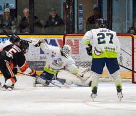Continuing to trade tallies early in the third period, Ty McKay put the home side back up by a couple as he collected a Cole Shepherdson chance then took it to his right where he tucked in his 11th of the campaign at 2:14.