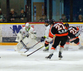 Getting Vale out for an extra attacker in the late going, Espanola pushed to force overtime, but Hearst held on, including one final save by Boivin just before the buzzer sounded to give them the win.