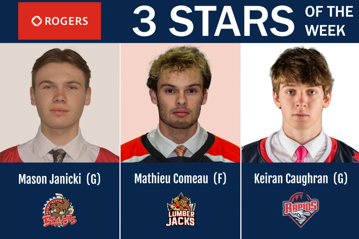 SUDBURY, Ont. – The Northern Ontario Junior Hockey League (NOJHL) announced Monday that goaltender Mason Janicki (Blind River Beavers); forward Mathieu Comeau (Hearst Lumberjacks) and netminder Keiran Caughran (French River Rapids) have been named its Rogers 3 Stars of the Week for the period ending October 5.