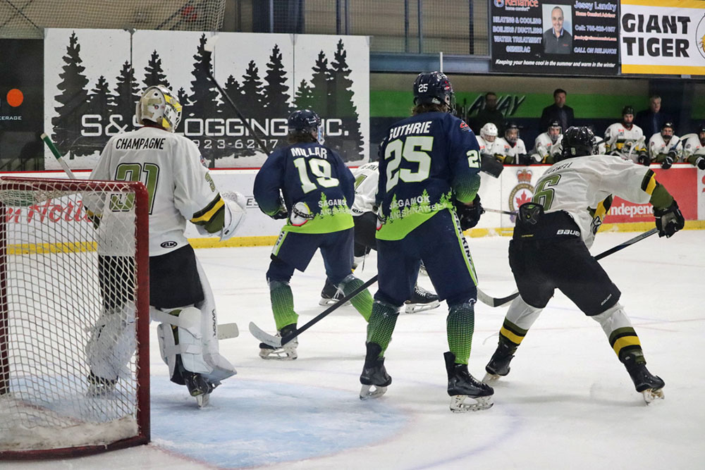 Espanola drew level on a man advantage deep into second stanza as a Carter Brownlee shot from the high slot flipped around in front where Graydon Guthrie eventually finished off a frenzied goal-mouth scramble at 16:03.