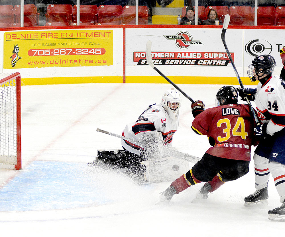 French River had a solid chance to tie it in the final minute of the frame when Jonah Gareau forced a turnover while his club was shorthanded and went in alone only to be denied by Timmins’ goalkeeper Ayden Mullen.