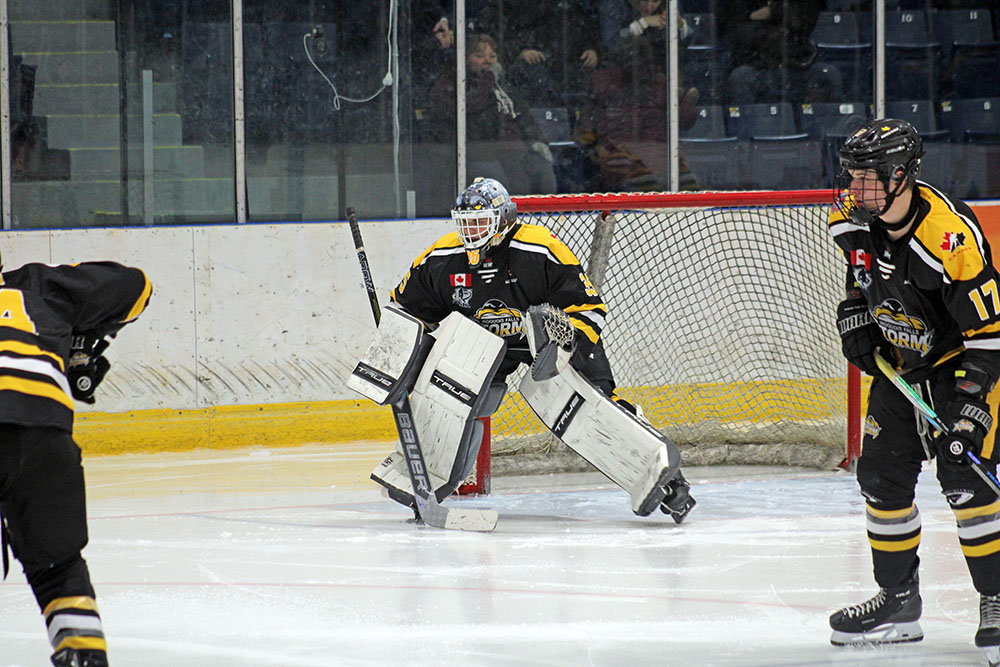 Their third came at 8:23 when Jacob Cantin raced out of his own zone and from outside the Storm blueline sent a shot off the end boards that bounced out front and off of Sausset-Plateaux and into the net.