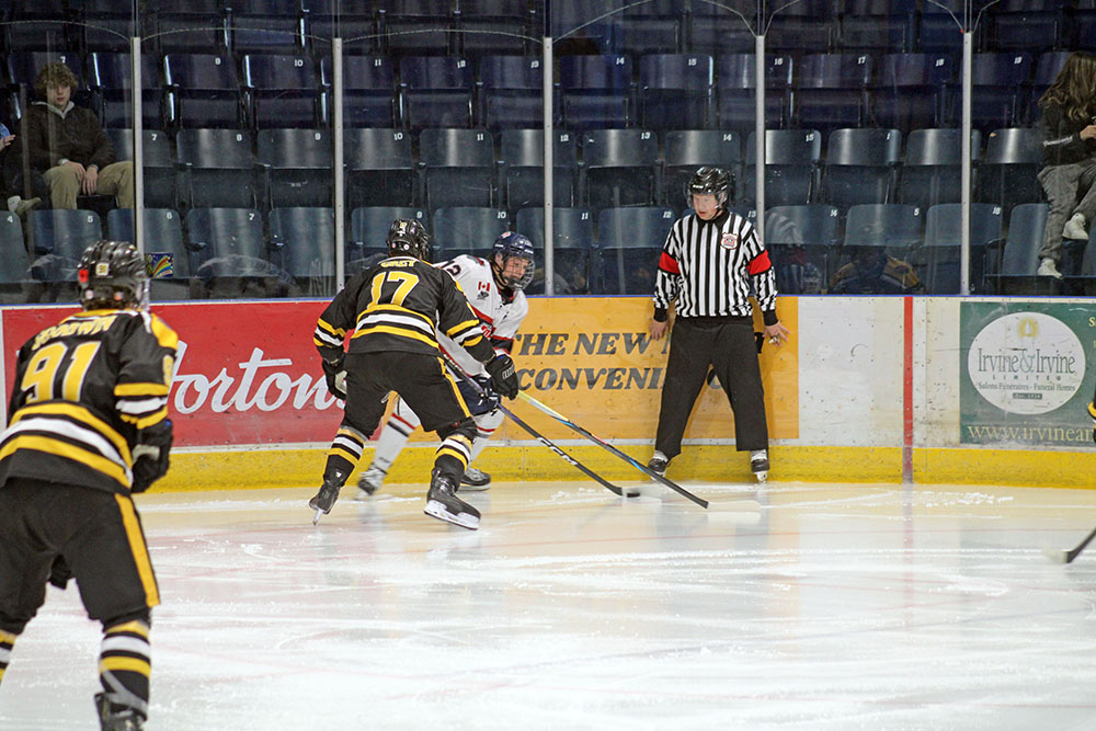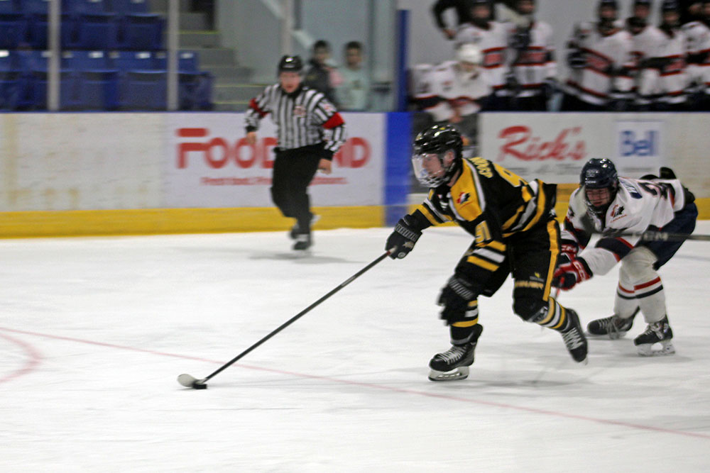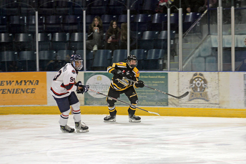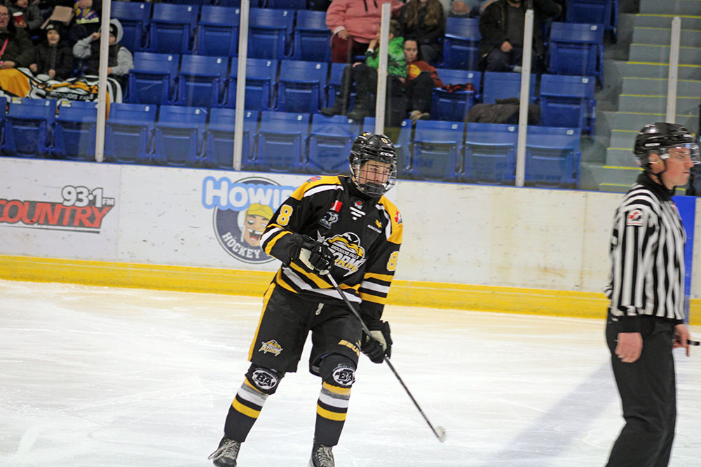 Up a skater to begin the middle session, Lucas Peever put the home side on the board 36 seconds in as he redirected in an Aiden Bevan point blast that got past French River’s Keiran Caughran.