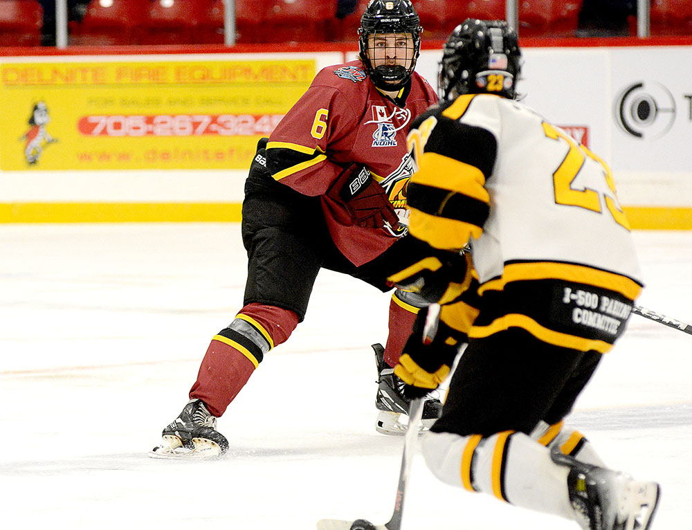 TIMMINS, Ont. – The Timmins Rock saw five players collect their first NOJHL markers then had to hold-off a four-goal third period outburst by Anden Marceau of the Soo Eagles before eventually prevailing 8-5 in a Northern Ontario Junior Hockey League afternoon affair at McIntyre Arena.