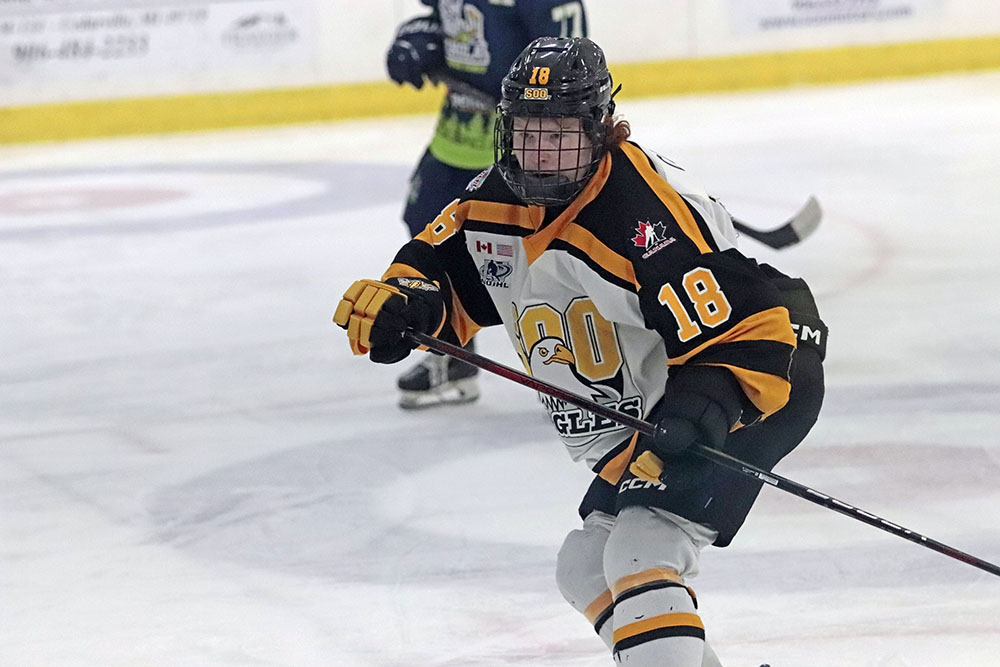 SAULT STE. MARIE, Mich. – A Logan Stawizynski goal with six seconds remaining in regulation was the difference as the Soo Eagles edged the Espanola Paper Kings 4-3 in a thrilling finish to a Northern Ontario Junior Hockey League meeting at Pullar Stadium.