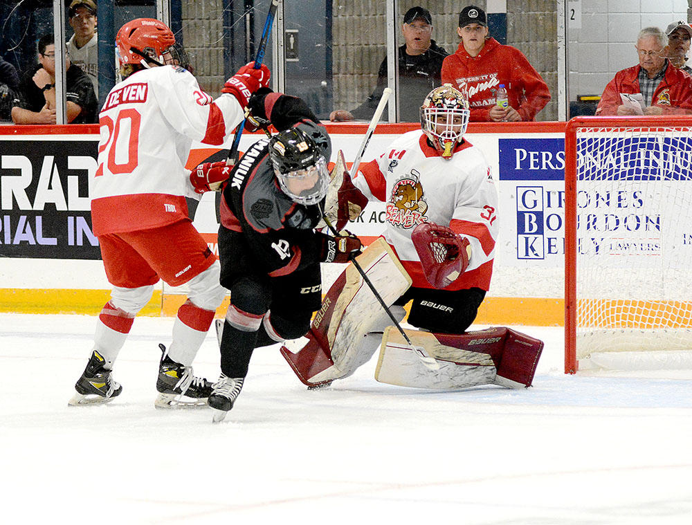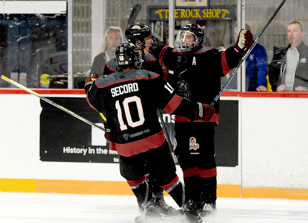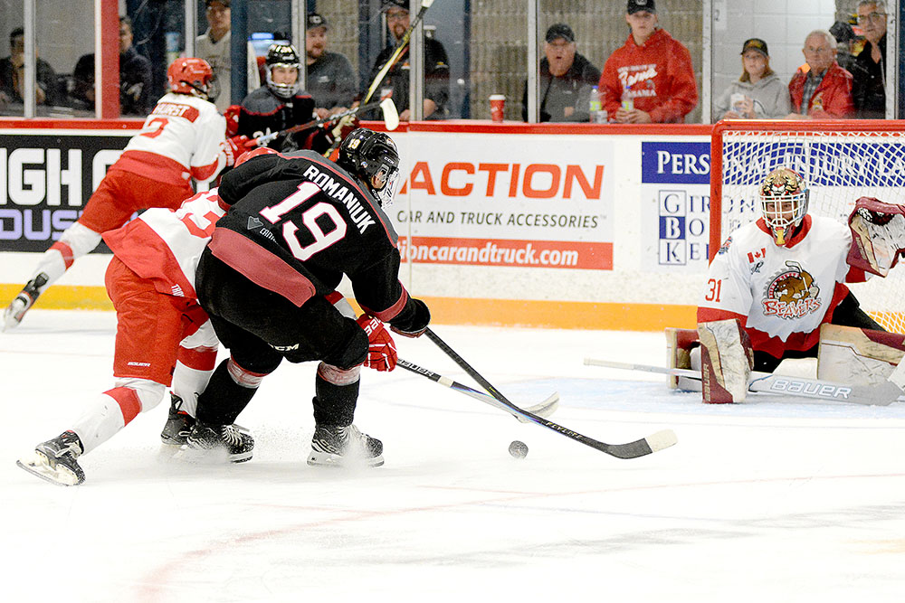 Another from the Rock a couple of shifts later featured Brant Romaniuk connecting at 10:57 by knocking in a second chance in close off a feed from Lucas Lowe below the goal line.