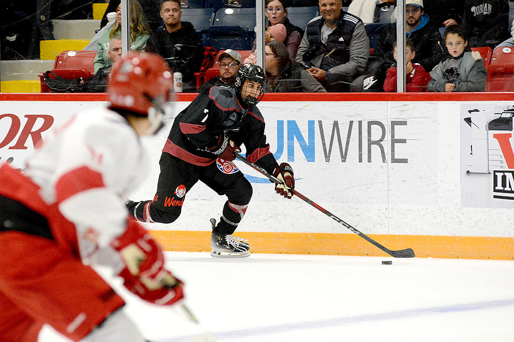 A fourth on the night, early in the middle stanza, saw Braedyn Cyr bank one in off a defender’s skate from a sharp angle just after a power play they were on had expired in eluding Connor Dunham-Fox who had replaced Hauger to begin the period.